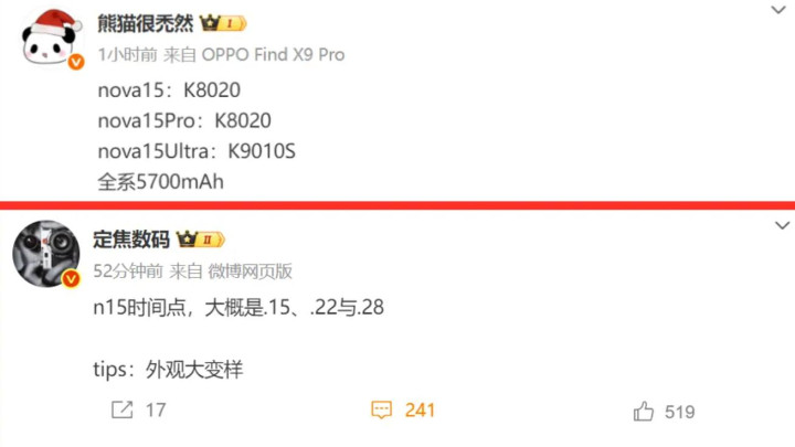 根据最新的爆料,这台机器极有可能在12月中旬(大概是15号左右)预热,月底(28号)正式发售。作为华为2025年的收官之作,Nova 15这次的刀法,那是相当精准。